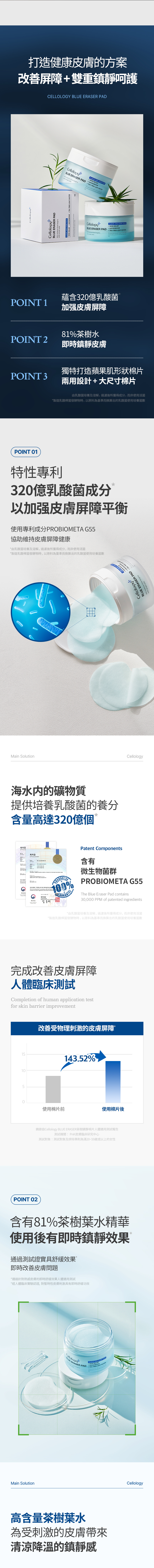 🧫含320億乳酸菌 & 茶樹水精華成分:加强皮膚屏障平衡及提供即時鎮靜效果