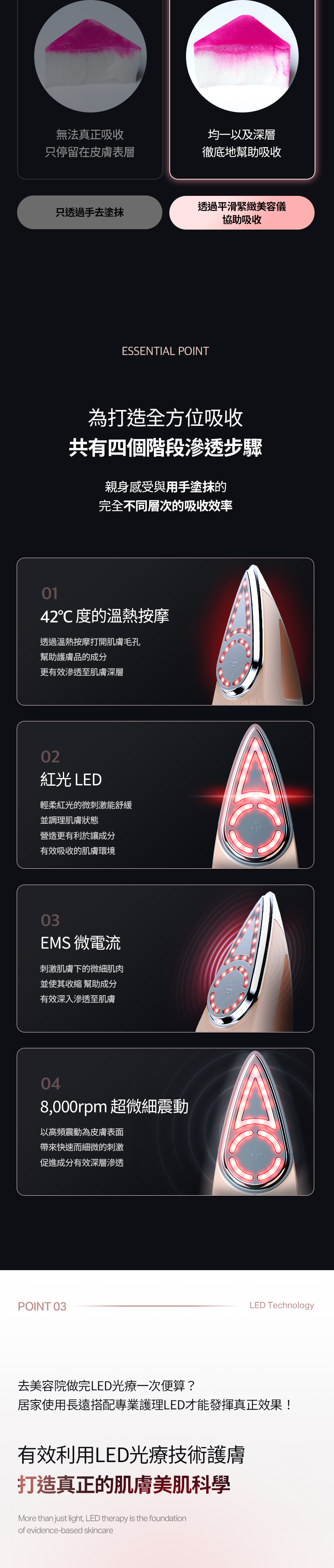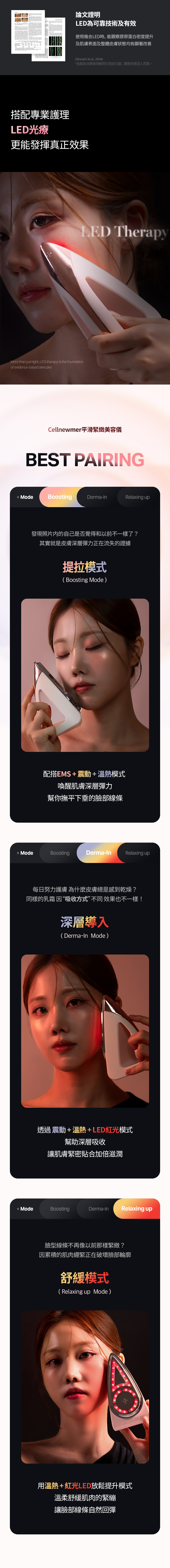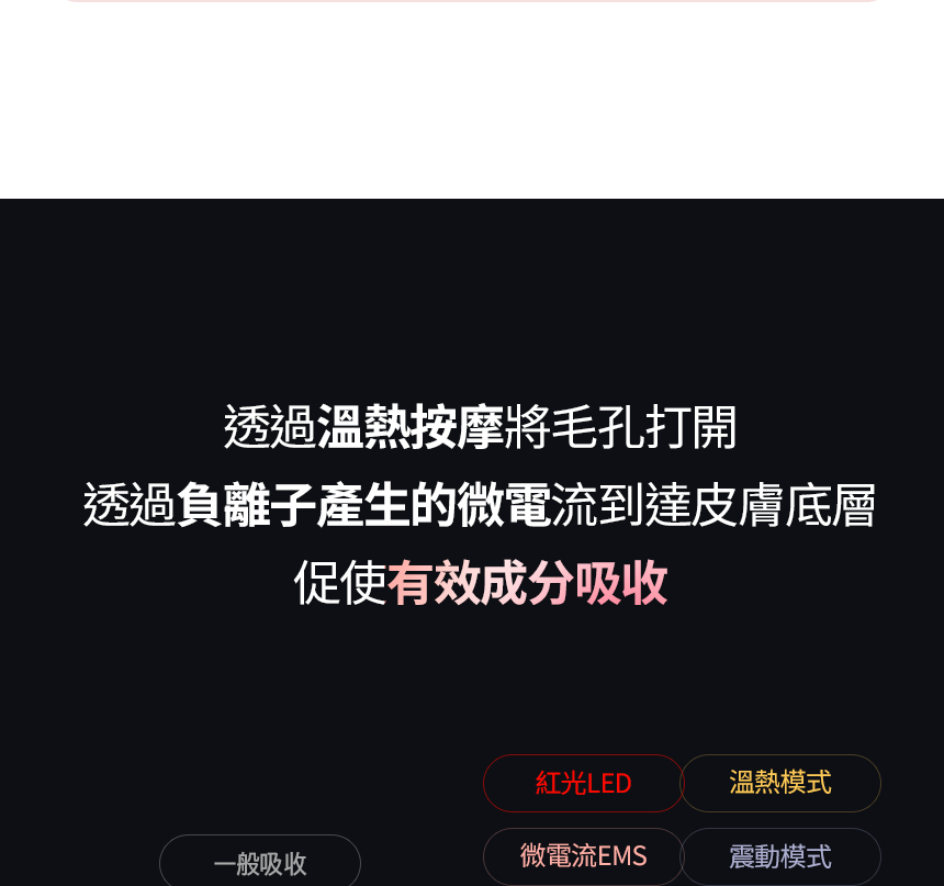 ⚡以4大功能(溫熱 X 紅光 X EMS微電流 X 震動) 打造3大按摩模式!