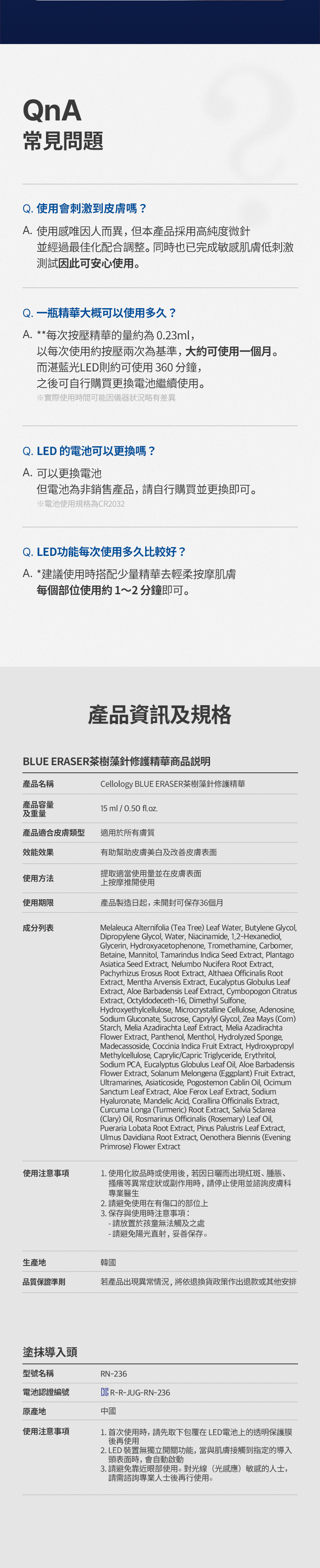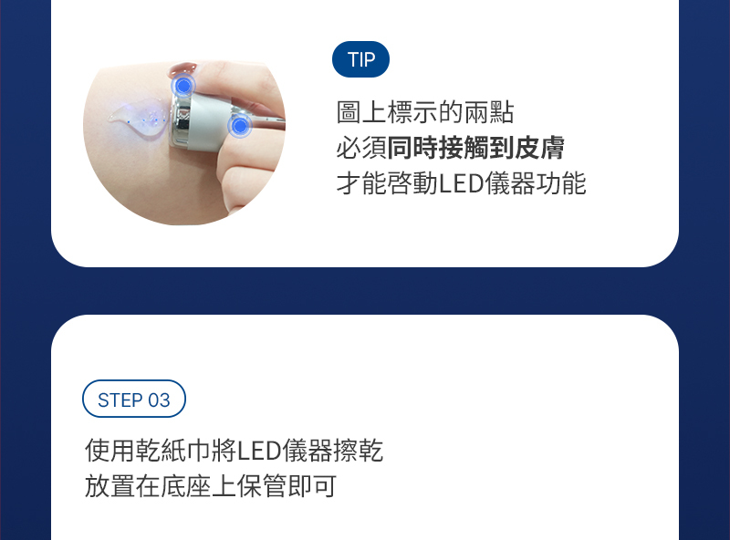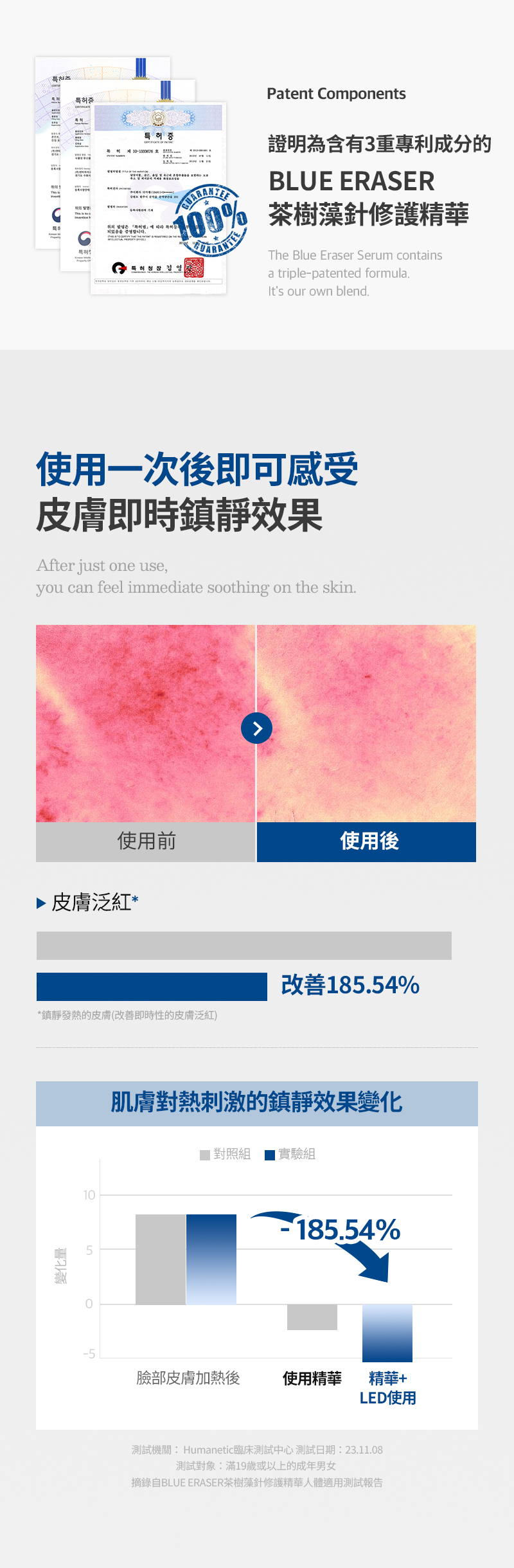 ✅以藍色LED裝置增加吸收,改善皮膚暗瘡及泛紅情況