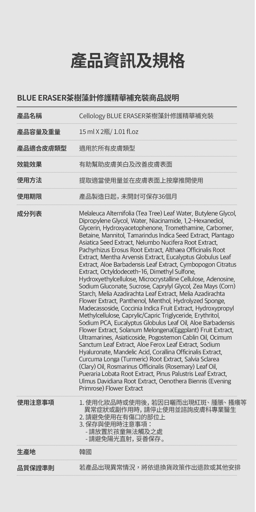 BLUE ERASER茶樹藻針精華補充裝2套(15ml*4)