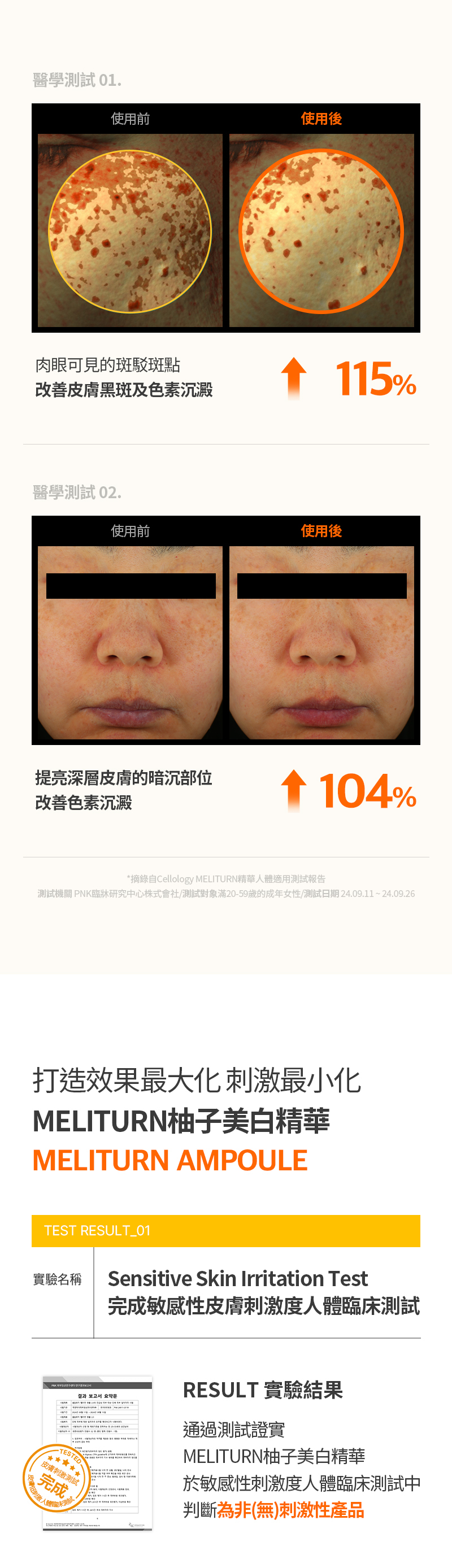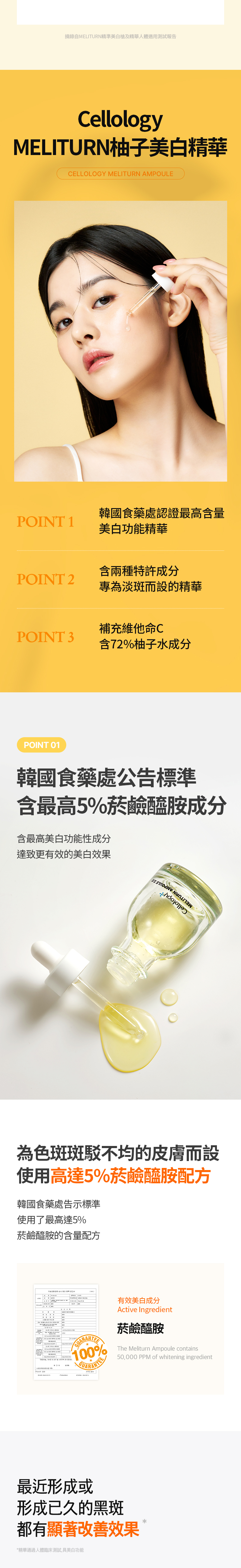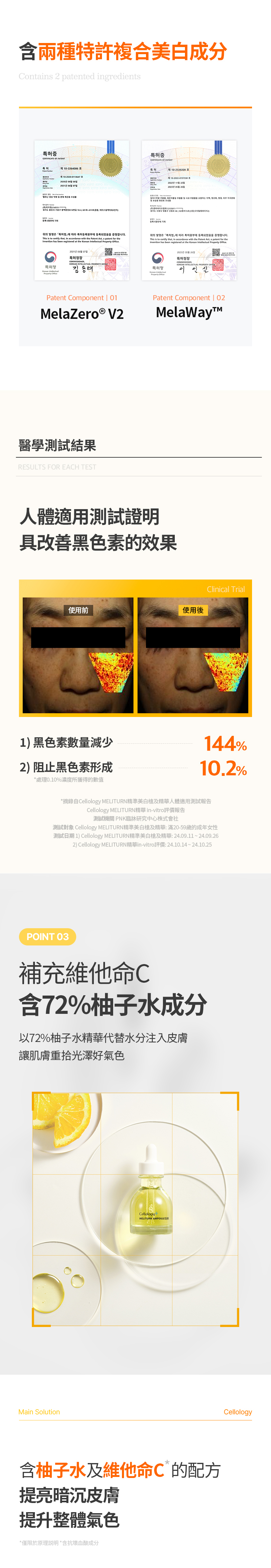 🍊含72%柚子水+5%煙酰胺+維他命C:搭配雙專利成分,研究顯示可淡化已形成5年或以上黑斑