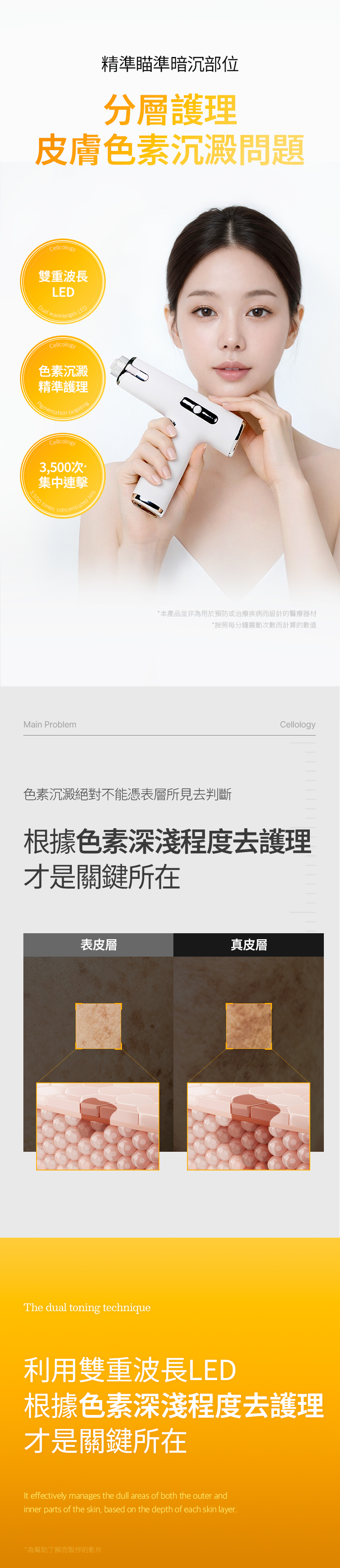 💡雙波長LED Shot:結合紅光&綠光針對不同皮層淡斑亮膚