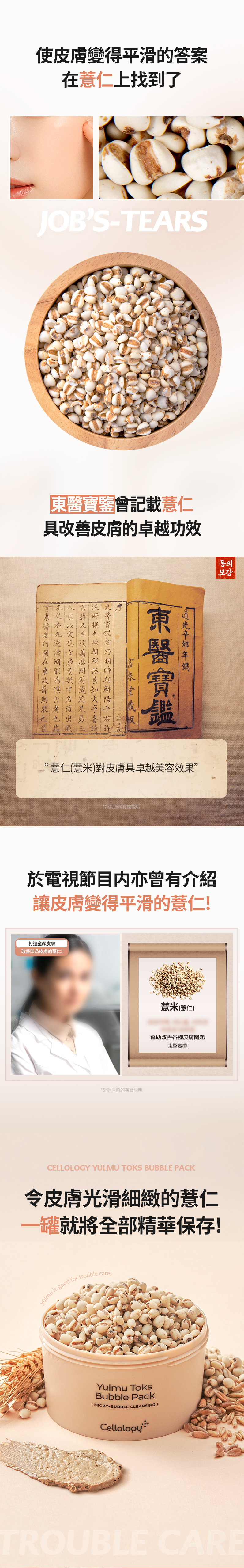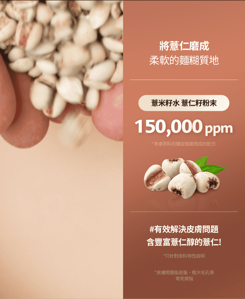 🌾含薏米籽水 薏仁籽粉末:去除皮膚上粒粒,溫和潔淨皮脂角質,令皮膚水潤且柔滑
